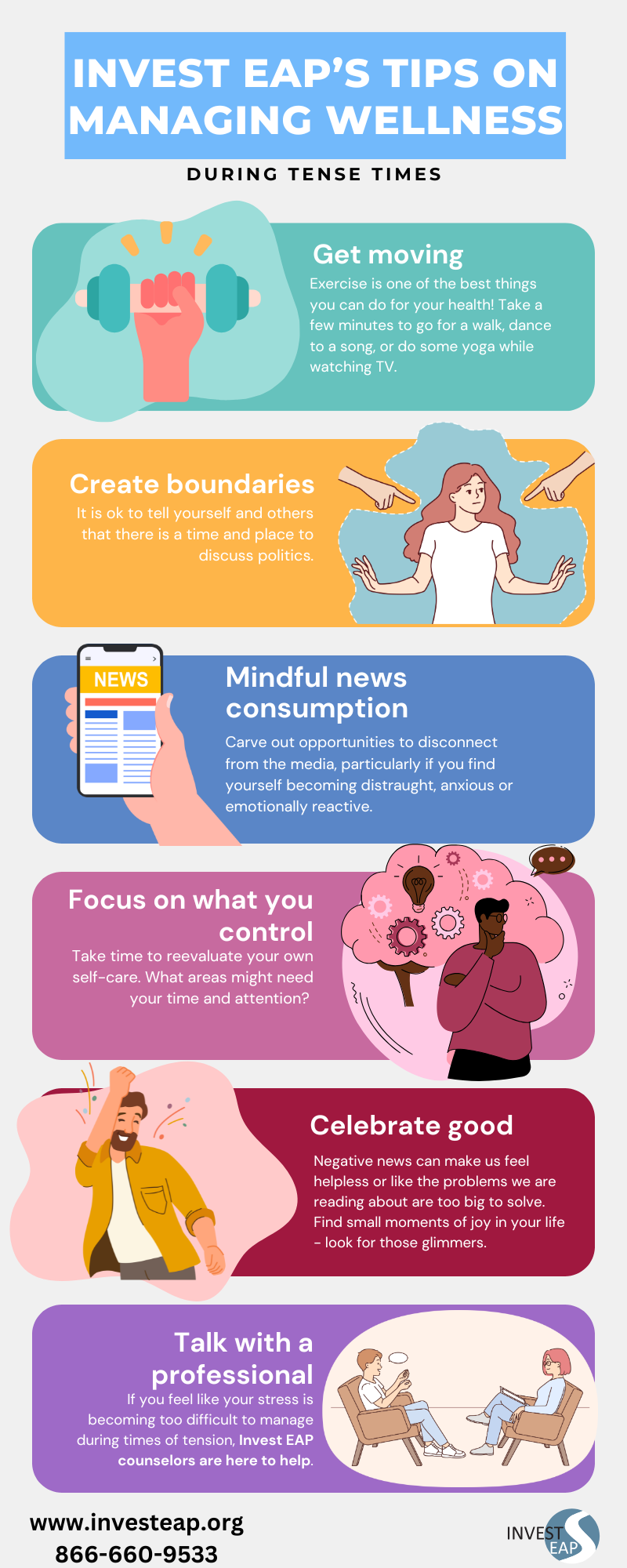 6) Talk with a professional – If you feel like your stress is becoming too difficult to manage during an election year, our counselors are here to help.